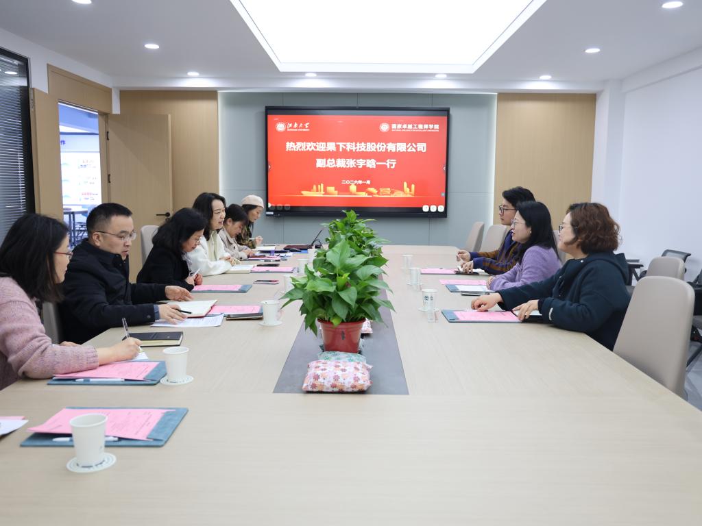 会后,果下科技一行实地参观国卓院展厅,深入了解我校研究生工程教育领域相关成果与国卓院建设思路、举措、成效。